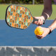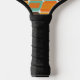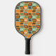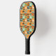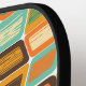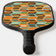 Cette pagaie à pickleball a un design moderne du milieu du siècle de rectangles arrondis penchés sur le côté avec des rectangles inclinés à l'intérieur faits de lignes dans les couleurs des années 1970.
