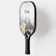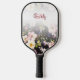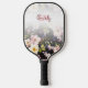 Raquette De Pickleball Aquarelle rose Roses jaunes sur noir, Monogramme