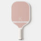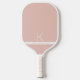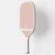 Conception initiale monogramme blanc et rose pâle, moderne et sobre, sur une pagaie personnalisée à base de pickleball, dans une police sans-serif minimale et professionnelle classique pour votre lettre de nom, et les coordonnées ou numéro de téléphone optionnels.