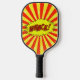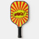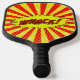 Comic Whack Logo Pickleball Paddle en rouge et jaune.