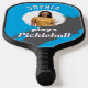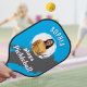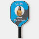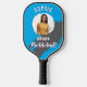 Une pagaie de pickleball cool, qui peut être personnalisée avec une photo et un nom sur un arrière - plan bleu vif