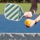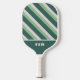 Ce design amusant et sportif présente un vert émeraude foncé, un vert sauge poussiéreux et des rayures blanches en diagonale. En bas, vos initiales apparaissent dans une police de style rétro contre un bloc de couleur vert foncé. La garniture de cette pagaie de pickleball est présentée en blanc, mais est également offerte dans d'autres styles. Assurez-vous de taper vos initiales dans la section Personnaliser pour customiser ce design tape-à-l'oeil.