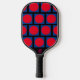 Cette conception a un motif amusant composé de boîtes bleues et de cercles rouges, mis sur un arrière - plan noir. Cette pagaie peut être customisée en changeant les couleurs. Ces pagaies sont approuvées pour utilisation par USA Pickleball (anciennement USAPA). Vous pouvez choisir votre couleur de grip, noir, blanc ou bronzé. Moyennant un supplément, vous pouvez acheter une couverture de protection et une balle de Pickleball en plein air.