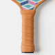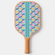 A Bright Pastel Modern Designed Pickleball Paddle Of Pink, Blue, Yellow And Gray Geometric Designs