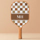 Raquette De Pickleball Brown moderne et blanc À damiers Initiales Monogra