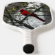 Un cardinal mâle assis dans mon arbre Mimosa au début du printemps.