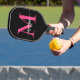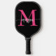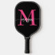 Raquette De Pickleball Chaud rose noir moderne Script Girl Monogramme Nom