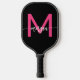 Raquette De Pickleball Chaud rose noir moderne Script Girl Monogramme Nom