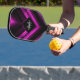 Raquette De Pickleball Chevron noir rose chaud brillant métallique Monogr