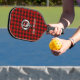 Pagaie de pickleball élégant avec badge de crête de clan Wallace écossais et texte personnalisable sur arrière - plan tartan