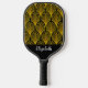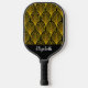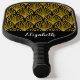 Cette élégante pagaie à pickleball présente un design Art Déco classique en or et noir avec un nom personnalisé sur la base. Motif classique avec texte blanc, vous pouvez modifier le monogramme pour le personnaliser à l'aide de l'outil d'édition dans la liste. C'est un cadeau amusant, élégant et élégant pour un joueur de pickleball.