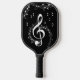 G Clef parmi les notes blanches de musique sur le noir. L'arrière - plan noir fait apparaître les notes vives blanches.