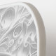 Une collection de papier argenté finement conçu qui étouffe les fleurs de marguerite et les motifs tourbillonnants sur un arrière - plan blanc.