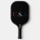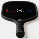 Pickleball Paddle for pickleball game day play print with U.S.A. Red White And Blue Lettering Design illustration par TheFabricSeal print on demand shop à Zazzle.com #ZazzleMade https://www.zazzle.com/store/thefabricseal Tous les drapeaux des pays du monde entier sont si beaux, y compris le drapeau inspiré pour ce design des Etats-Unis d'Amérique et l'équipe U.S.A. avec beau rouge, blanc et bleu sur un audacieux couleur arrière - plan noire. Notre boutique présente également les collections de produits de la marque américaine Stars and Stripes avec une couleur arrière - plan noire et blanche. Regarde-les.