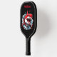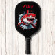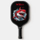 Aquarelle cool Tête de requin Monogramme moderne Pagaie de pickleball Cette pagaie de pickleball cool présente une tête de requin d'aquarelle sur un arrière - plan noir, avec votre nom ou monogramme en caractères rouges gras pour un look simple et élégant, mais tendance. Il fait le cadeau parfait pour Noël, anniversaire, remise de diplômes, et plus encore.