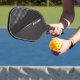 A cool black carbon design decorates this pickleball paddle. Personalize it with your name. Makes a great gift.