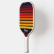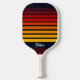 Motif à rayures colorées avec le nom customisé Pickleball Paddle. Un design à rayures colorées inspiré d'un coucher de soleil. Les rayures sont différentes dans les tons bleu foncé, rose foncé, rouge, orange et jaune. Vous pouvez facilement ajouter votre nom ou votre monogramme pour en faire une palette personnelle qui se démarquera. Le nom est un script dans un grand format blanc.