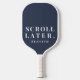 Personalized minimalist minimal simple funny inspirational motivational modern lifestyle men pickleball paddle. Manly neutral dusty navy blue background and elegant white typography for the custom name and the humorous sayings quote phrase SCROLL LATER. Premium look for this sport equipment dedicated to a pickleball enthusiast passionate lover, to an active man gentleman who wants a healthy self care wellbeing wellness routine with outdoor activities and detox pause from electronic devices screens. For you or as a thoughtful custom funny gift for a friend or family member, suitable for many occasions and celebrations, like birthday, Father’s Day, graduation, retirement, Christmas, anniversaries etc. at around 100 dollars. Offline real games gathering and socializing with people in person are a wise choice of lifestyle in our stressful days.