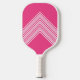 Stand out on court with a custom pickleball paddle! Personalize the template with your monogrammed initials and text — ideal for a player's name, team name, location, or a fun saying. This sports jersey style design features a retro block-style font, trendy script, and matching chevron colors on the reverse side. Perfect for all ages, including kids, teenagers, and adults. Custom paddles make a lovely unique gift for friends, family, and Pickleball enthusiasts! Colors: pink and white.