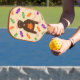 Cette superbe pagaie de Pickleball présente une image graphique d'un mignon petit rat brun avec queue et pieds d'oreilles roses. Le rat tient un citrouille orange entre ses pattes. Une collection de bonbons verts, violets et oranges entoure le petit rat. Ce design est parfait pour tout amateur de rat ou propriétaire de cet Halloween.