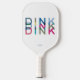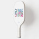 Ce DINK personnalisé nom pickleball paddle avec tête tournante sur le terrain. Un design moderne avec le mot "DINK" dans des tons vifs de rose, bleu, jaune et vert. Personnalisez la pagaie avec les initiales ou le nom de votre choix. Faites un cadeau merveilleux pour le joueur de pickleball dans votre vie ou vous offrez vous-même. Une partie d'une collection de Parcel Studios.