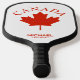 Pagaie de pickleball rouge et blanc du Canada avec drapeau canadien et feuille d'érable. Texte personnalisable Un grand cadeau pour les Canadiens.