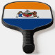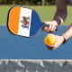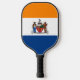 Pickleball Paddle avec le drapeau d'Albany, New York. Un drapeau orange, blanc et bleu avec l'emblème de la ville au centre