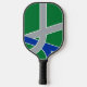 Pickleball Paddle avec un design avec le drapeau d'Albany, Oregon. Un drapeau vert, gris et bleu