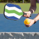 Pickleball Paddle avec un design avec le drapeau de Burlington, Vermont. Un drapeau bleu, blanc et vert