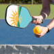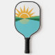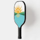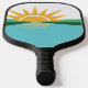 Pickleball Paddle avec un design avec le drapeau de Coral Springs, Floride. Un drapeau blanc, vert et bleu avec un soleil levant jaune