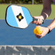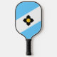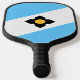 Pickleball Paddle avec le drapeau de la ville de Madison, Wisconsin; drapeau bleu clair et blanc avec une croix noire et cercle jaune au centre
