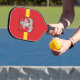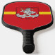 Pagaie de Pickleball avec design avec le drapeau de Vilnius, capitale de la Lituanie ; drapeau rouge avec bande jaune et armoiries avec deux lions dorés tenant un bouclier au centre