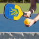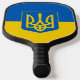 Pickleball Paddle avec le drapeau de l'Ukraine, un drapeau bleu et jaune avec les armoiries ukrainiennes (emblème) avec un trident au centre