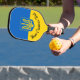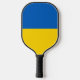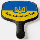 Pickleball Paddle avec le drapeau de l'Ukraine, un drapeau bleu et jaune avec les armoiries ukrainiennes (emblème) avec un trident au centre, et un modèle texte personnalisé pour votre message