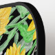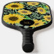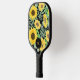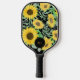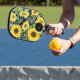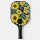Pagaie de Pickleball élégant avec des tournesols jaune aquarelle sur arrière - plan noir et votre monogramme