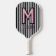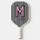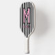 Raquette De Pickleball Elegant Black& White Stripes Pink Script Monogram