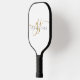 Une pagaie chic et moderne à bille à cornichons, avec un monogramme noir or avec un script initial dramatique avec des swashes et votre nom complet. La face de la pagaie est un arrière - plan blanc avec des bords et une poignée noirs. Une élégance simple. L'arrière - plan a un effet visuel texturé.