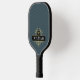 Profitez d'une partie de pickleball avec cette pagaie de pickleball avec un motif à rayures gris classique avec un emblème noir et or et personnalisable initiale et nom. Ce design est élégant et masculin, et il fera un grand cadeau pour la Fête des Pères, les papas, les grands-pères, les maris, les groommestres mariages et les amateurs de sport. Modifiez l'initiale et le nom pour qu'ils correspondent à vos besoins.