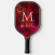 Raquette De Pickleball Élégant Ruby Red Gold Monogramme Nom initial