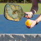 An enchanted magical forest fairy pickle ball paddle for those who love fantasy themes, with your name in a decorative typography. gold and green hues.