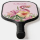 Un joli flamant rose exotique avec couronne et fleurs sur arrière - plan rose clair. Nom personnalisé