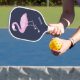 Raquette De Pickleball Flamant rose rose mignon sur bleu foncé avec nom