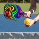 Rainbow Swirls Pickleball Paddle Ce Pickleball Paddle est idéal pour un large éventail de joueurs et d'expérience. Doté d'une poignée enroulée à la main et d'un noyau en fibre de verre et en polypropylène, cette pagaie légère offre une excellente sensation et une grande puissance pour le joueur compétitif. La surface lisse et la forme conventionnelle permettent une plus grande surface douce pour un contact plus solide.