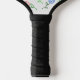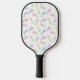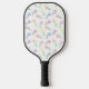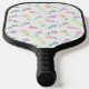 Cette pagaie de pickleball a un design moderne du milieu du siècle de cercles et de parties de cercle faites pour ressembler à des fleurs avec des tiges faites par des lignes continues, répétant à travers le design.