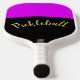 Ce design festif et coloré présente un texte centré "Pickleball" écrit dans une typographie de script festive contre un arrière - plan noir incurvé. Un arrière - plan rose lavande vif et lumineux complète la composition joyeuse.