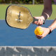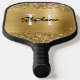 Créez votre propre pagaie à pickleball en or, noir et blanc. Le design graphique arrière - plan est un faux film métallique à l'ombre d'or associé à une parties scintillant rose en or imitation scintillante. Customisez le monogramme du glam girly. La parties scintillant est conçue pour ce cadeau. Il y a d'autres monogrammes d'or glamour girly glittery dans le magasin qui peuvent être transférés à plus d'articles.