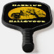 Une pagaie de Pickleball funky pour la saison éffrayante d'Halloween obscurci. L'oeuvre présente une silhouette d'arbre mort et une sorcière méchante sur la pleine lune et l'arrière - plan noir. Idéal pour un large éventail de joueurs avec des expériences variées. Ajoutez votre devis/nom pour personnaliser et en faire une pagaie unique. Si vous aimez cette oeuvre d'art amusante, vous pouvez visiter ma boutique "sports_games" pour les articles correspondants/similaires. Lien : https://www.zazzle.com/store/sports_games