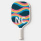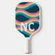 Raquette De Pickleball Initiales et ondes rétro en bleu rose jaune
