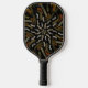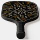 Raquette de Pickleball imprimée avec un motif crémeux jaune doré ratissé sur fond noir, motif géométrique symétrique à six côtés, conception graphique originale et illustration artistique par TheFabricSeal sur Zazzle #ZazzleMade https://www.zazzle.com/store/thefabricseal