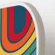 Un motif d'arche de ligne funky avec du bleu, du vert, du jaune, de l'orange et du rouge. Le design rétro comprend des courbes et des lignes de couleurs épaisses. Ajoutez votre nom ou supprimez le texte pour une pochette rétro amusante. Le nom est une simple police sans empattement en blanc.